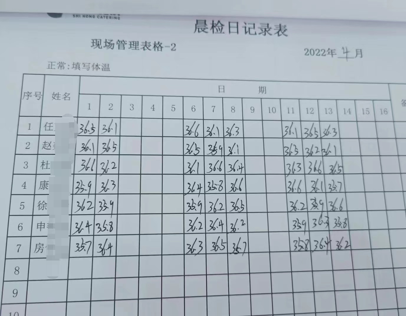 ● 岗前体温检测,全天供餐项目一日三测温;